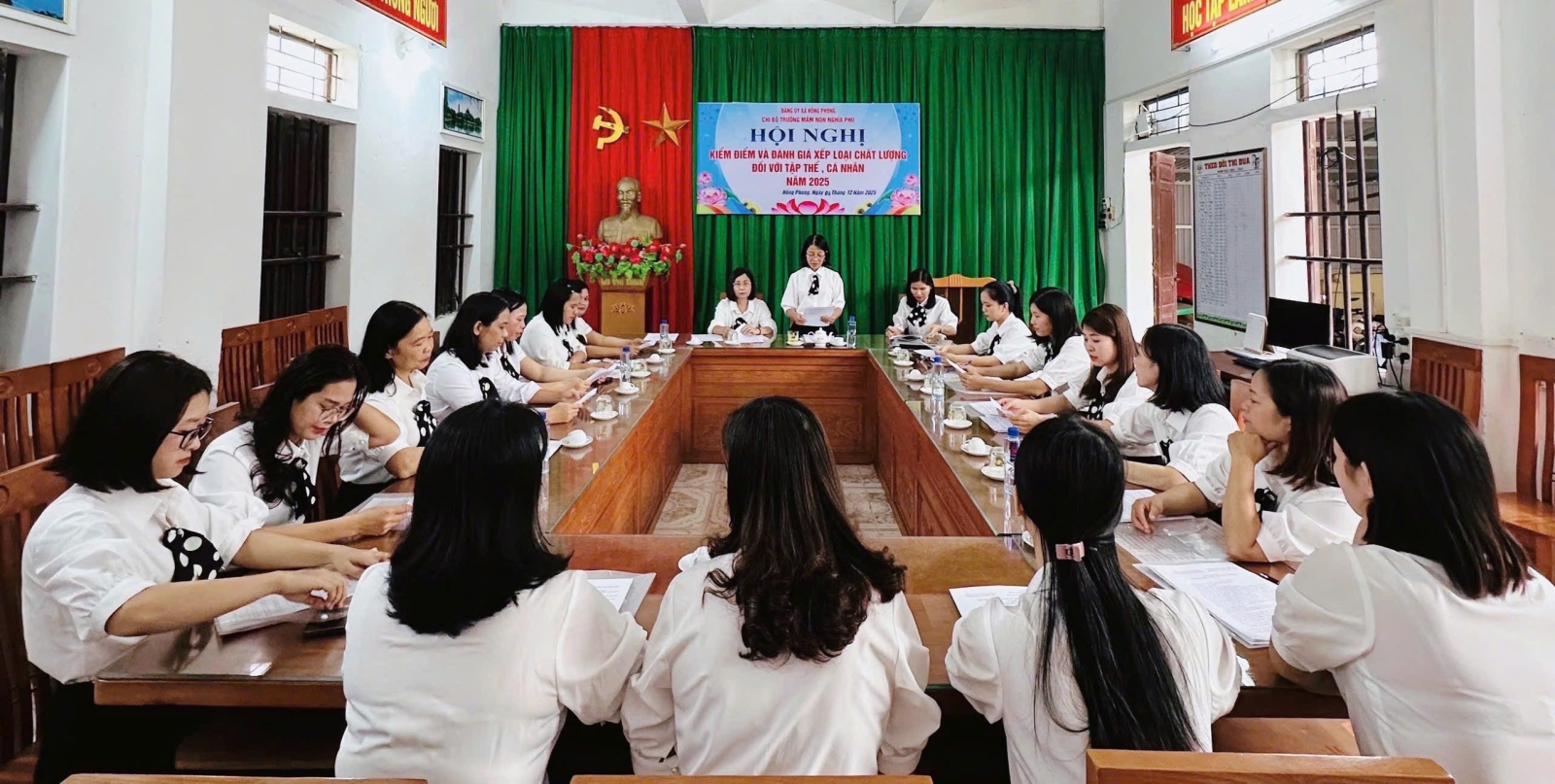 CHI BỘ TRƯỜNG MẦM NON NGHĨA PHÚ TỔ CHỨC HỘI NGHỊ KIỂM ĐIỂM, ĐÁNH GIÁ, XẾP LOẠI CHẤT LƯỢNG TẬP THỂ, CÁ NHÂN NĂM 2025